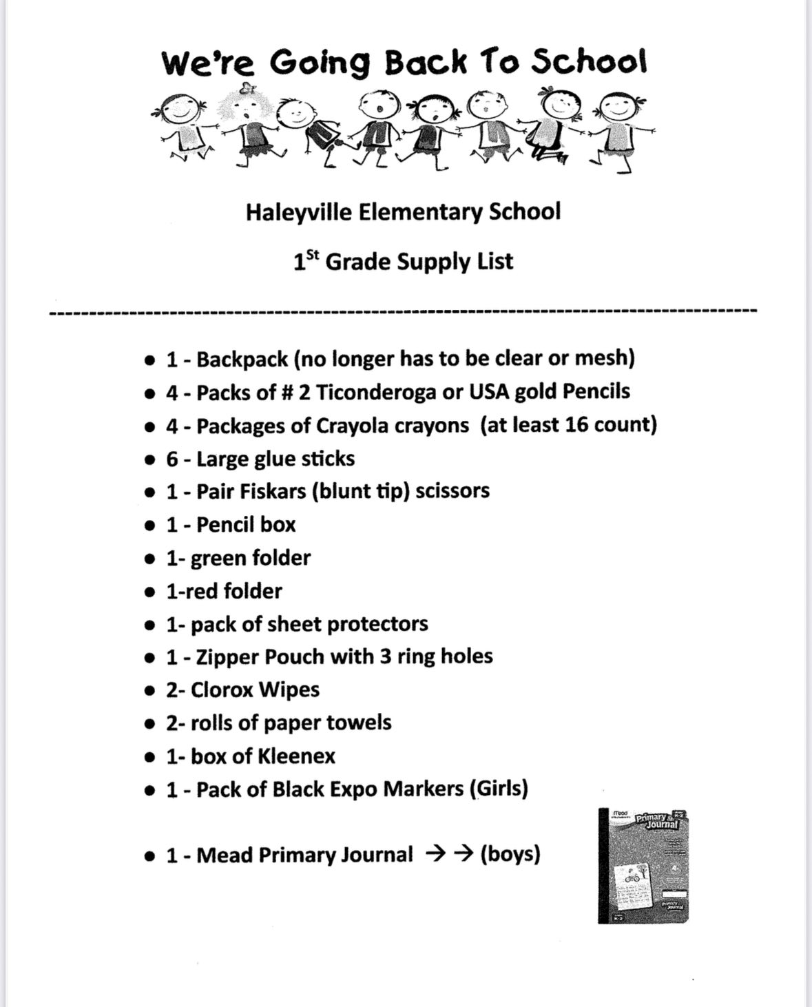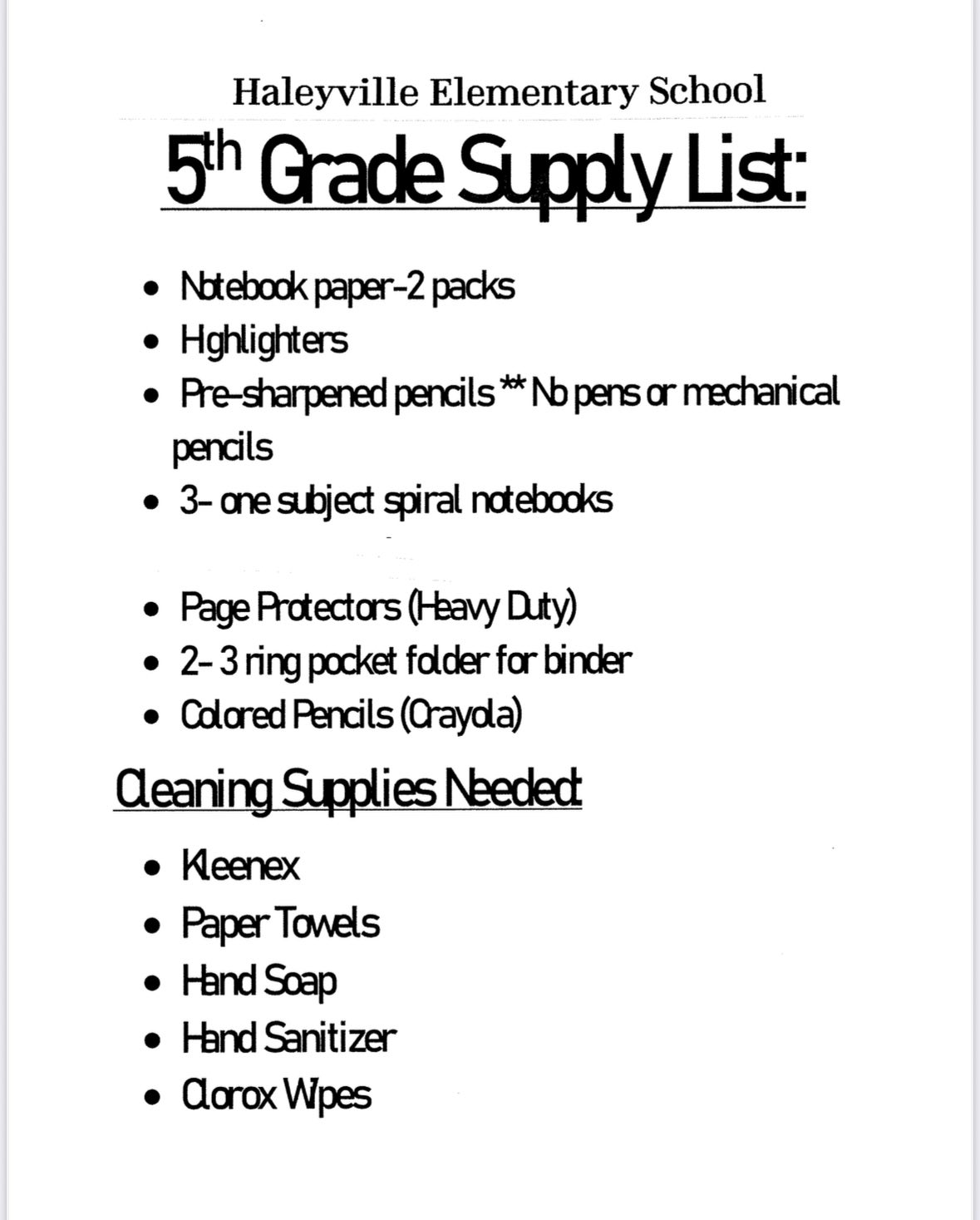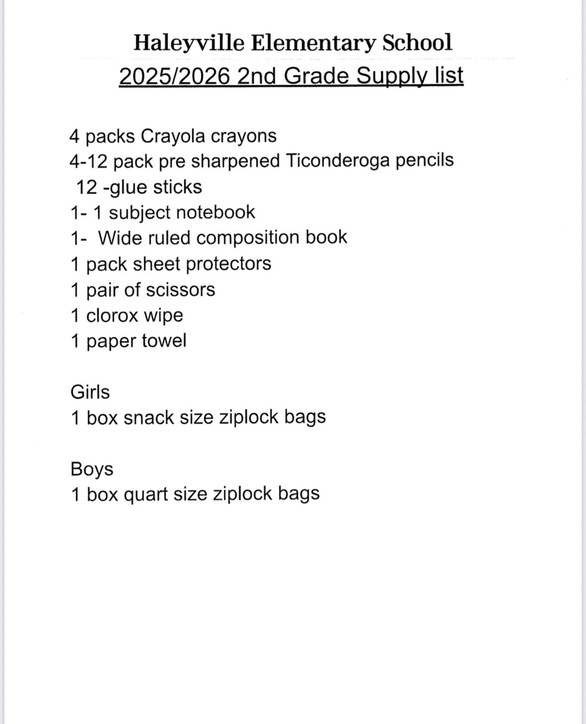 Haleyville Elementary School released their supplies lists this afternoon, outlining what each student needs prior to beginning the 2025-26 school year. The following lists have been created for kindergarten through 6th grades: